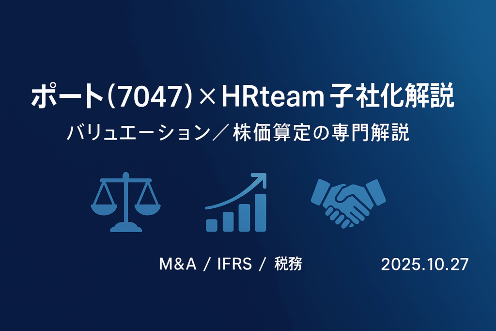本稿は、ポート株式会社が持分法適用関連会社であるHRteamの株式を追加取得し、子会社化する取引について、バリュエーション(株式価値算定)を軸に、法務・会計・税務の勘所を整理した専門解説です。数値・前提は開示資料に基づきます。 1. 取引の要旨... -